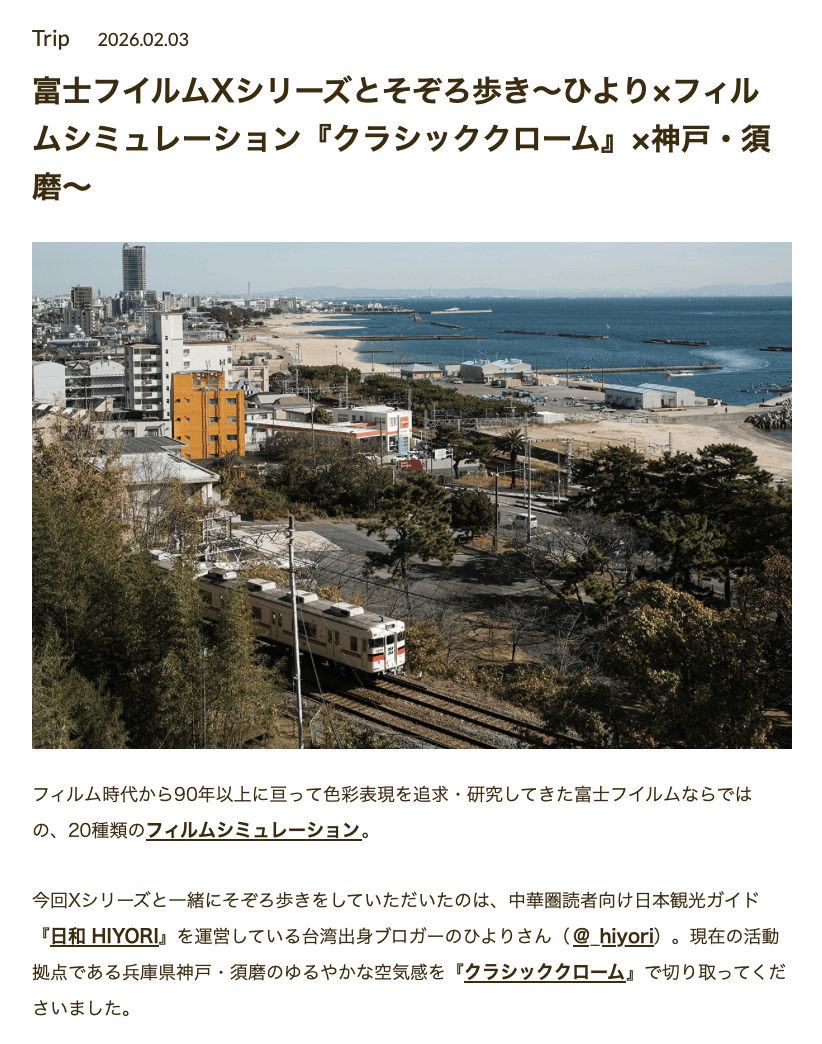 富士FUJIFILM X系列官方媒體「IRODORI by Xseries」執筆文章